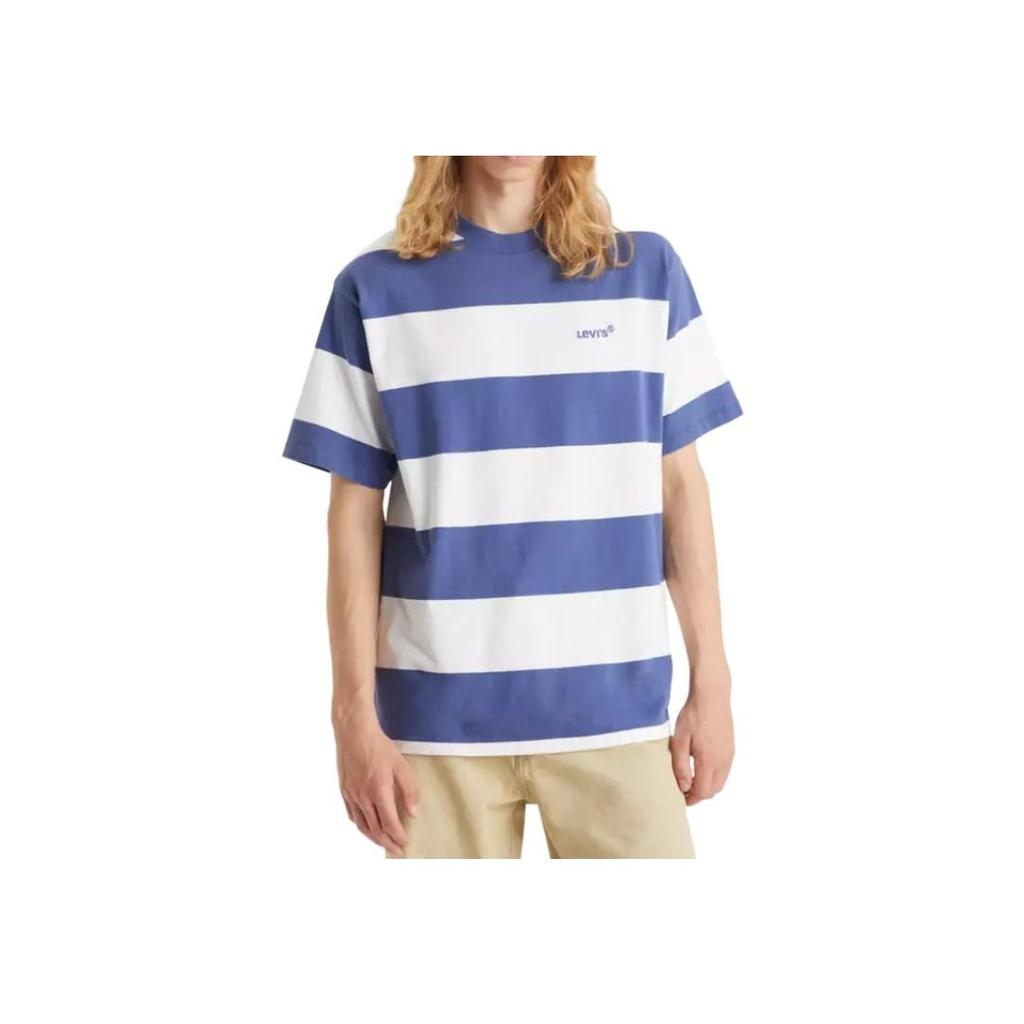 Мужская винтажная футболка в полоску Levis с коротким рукавом и круглым вырезом, синяя A0637-0094