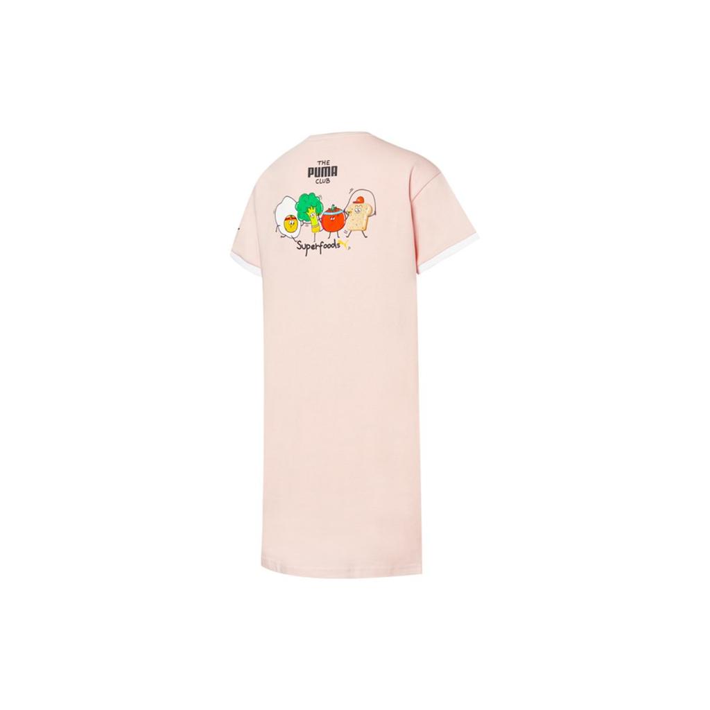 Puma Вышитый логотип с рисунком из мультфильма, круглый вырез, повседневное платье с коротким рукавом, женские платья, розовое 533105-36