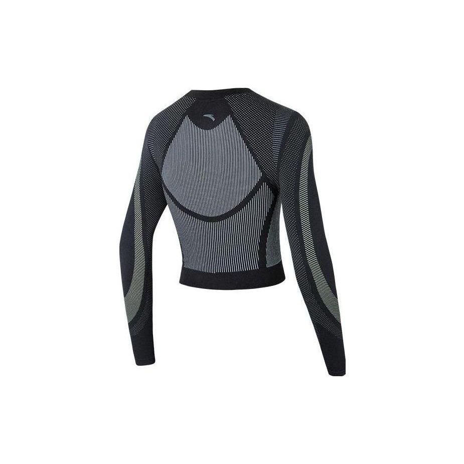 Anta Спортивный топ для фитнеса с длинным рукавом и цветным воротником-стойкой, женские топы, черный цвет 162215403-1