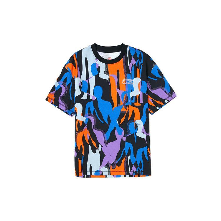 Li Ning Sports Basketball Series Свободная повседневная футболка с круглым вырезом и коротким рукавом Мужские футболки Черные Оранжевые AHSR361-2