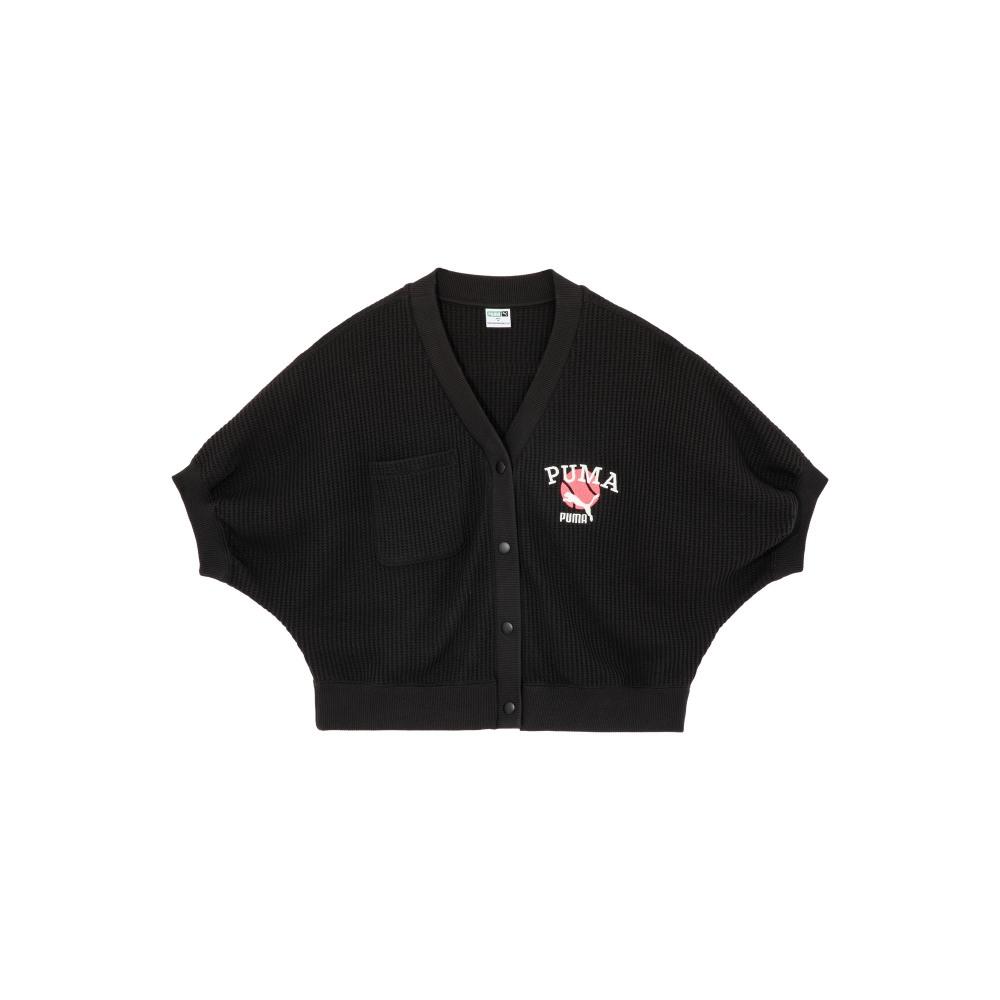 Puma Классическая трикотажная куртка с коротким рукавом, вышитым логотипом и одним рядом пуговиц, женская куртка черного цвета 622973-01