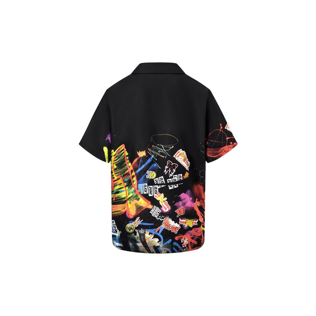Li Ning Skateboard Series Graffiti однобортная свободная рубашка с коротким рукавом мужские рубашки черного цвета ASHT475-2