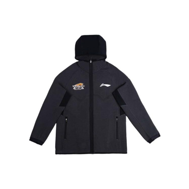Li Ning CBA Series Liaoning Team Outdoor Casual Sports Jacket Zop-Up Hooded Long Sleeve Jacket Men Jacket Black AWDTD47-1