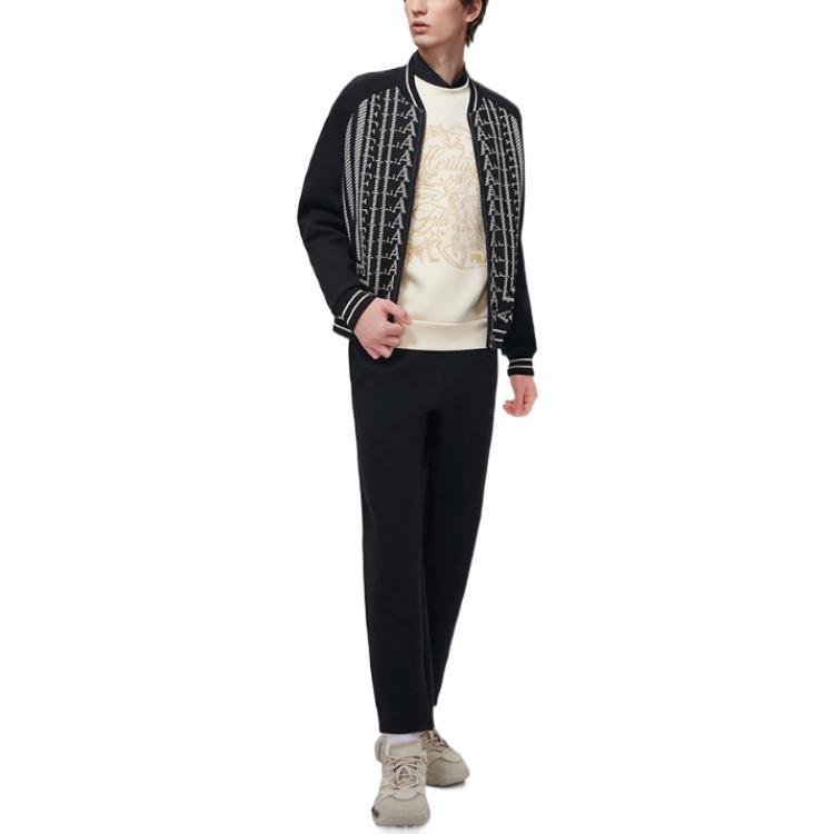 Fila Вязаная куртка на молнии с длинным рукавом с геометрическим узором Мужские куртки Черный F11M318502F-BK