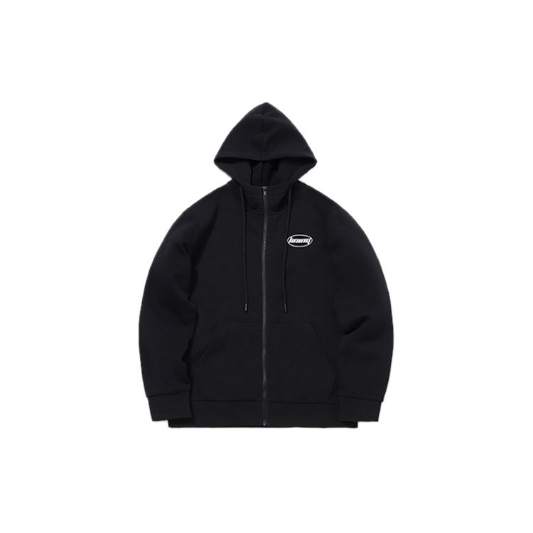 Li Ning Letter Logo флисовая повседневная трикотажная спортивная куртка с капюшоном мужская куртка стандартная черная AWDPD23-9