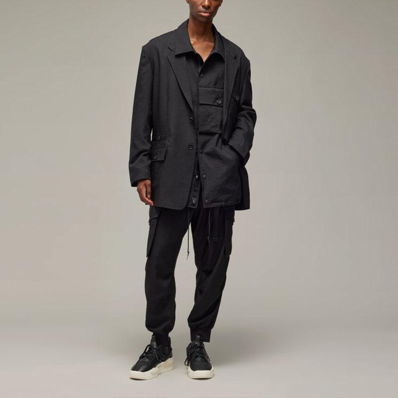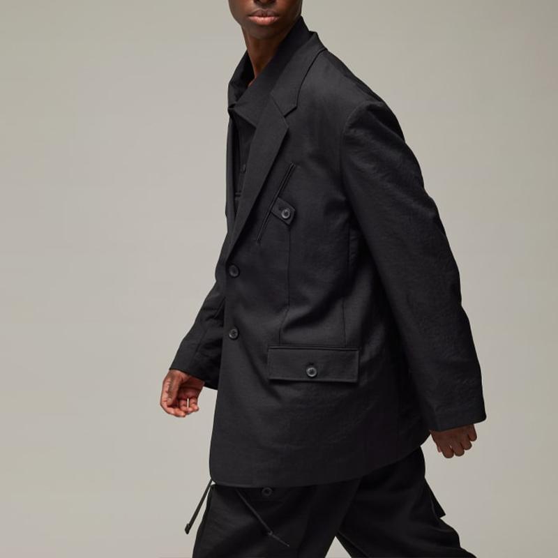 Y-3 SS24 Однотонный однобортный костюм с сетчатой подкладкой и драпировкой, длинный рукав, мужской костюм, черный IN8702