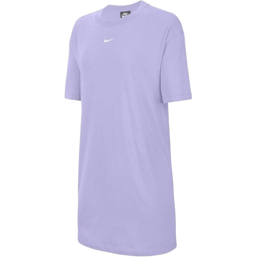 Nike Спортивное платье, однотонное, с вышитым маленьким логотипом, повседневное, спортивное, трикотажное, с коротким рукавом, женские платья, Dopamine-Purple CJ2243-569