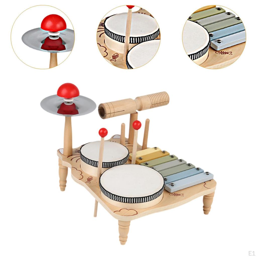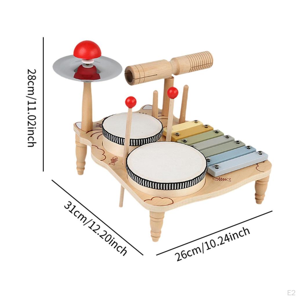 - 【Многофункциональный】: Набор ударных инструментов Xylophone Drum Set объединяет в себе ксилофон, барабаны и тарелки, обеспечивая детей богатыми звуками и ритмами.