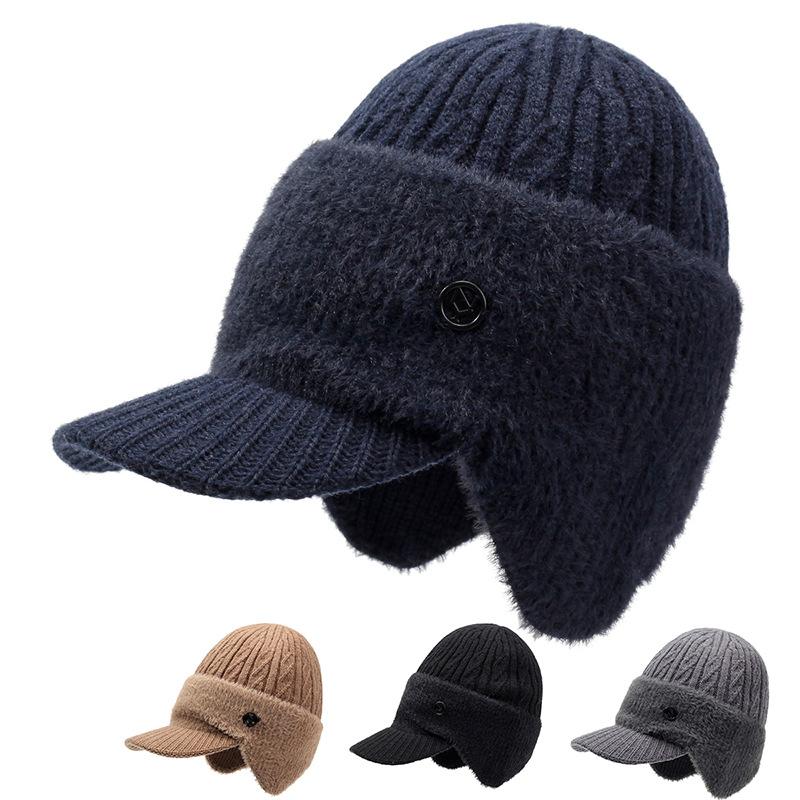 Мужская зимняя теплая вязаная шерстяная шапка для пап среднего и пожилого возраста, бархатная защитная шапка для ушей — купить товар онлайн с бесплатной доставкой по всему миру!