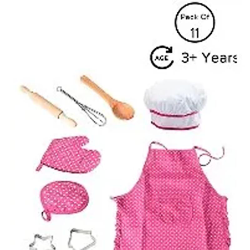 11 предметов детский набор для выпечки, набор повара, включает фартук для девочек, поварской колпак. Подарки в виде варежек и столовых приборов для детей 3–10 лет