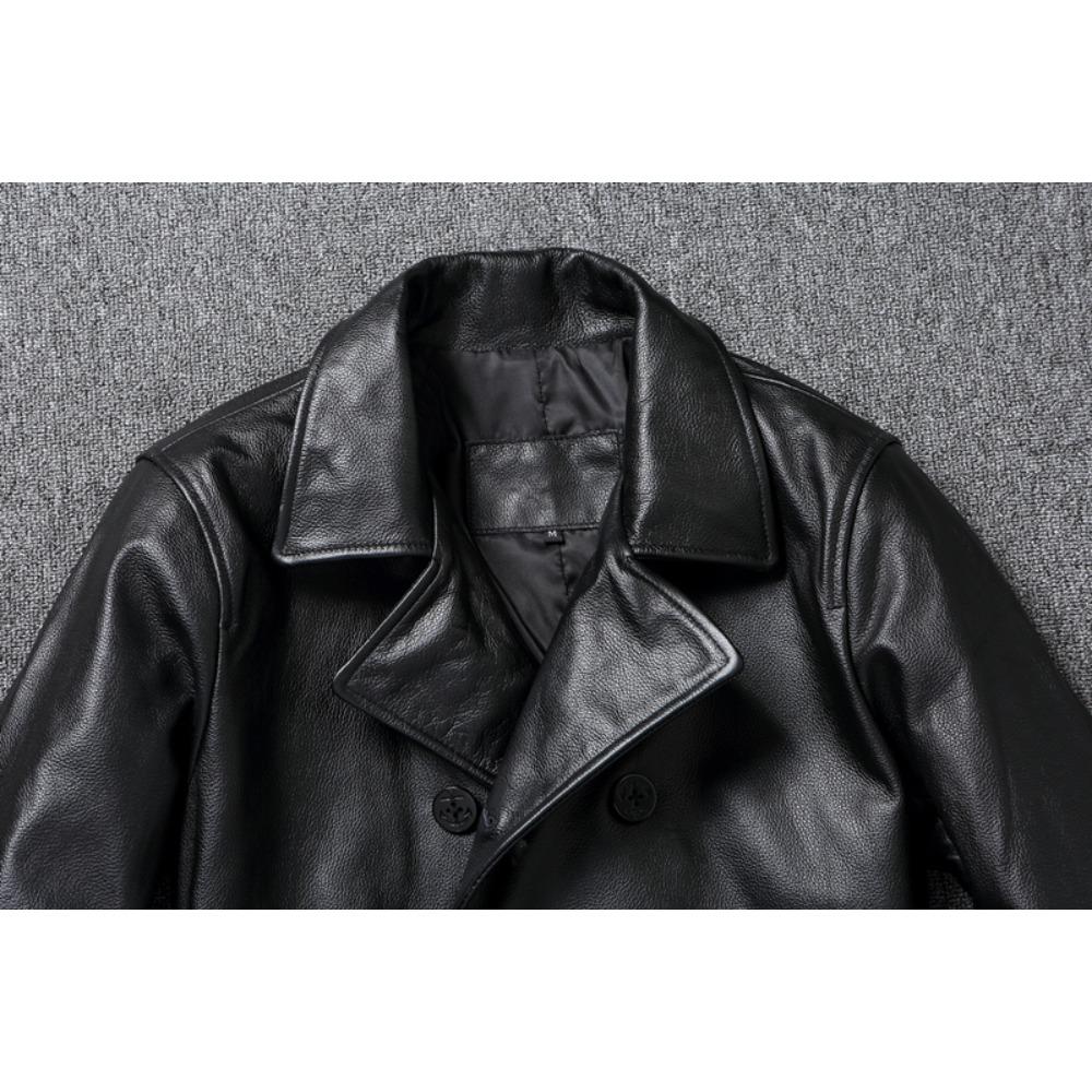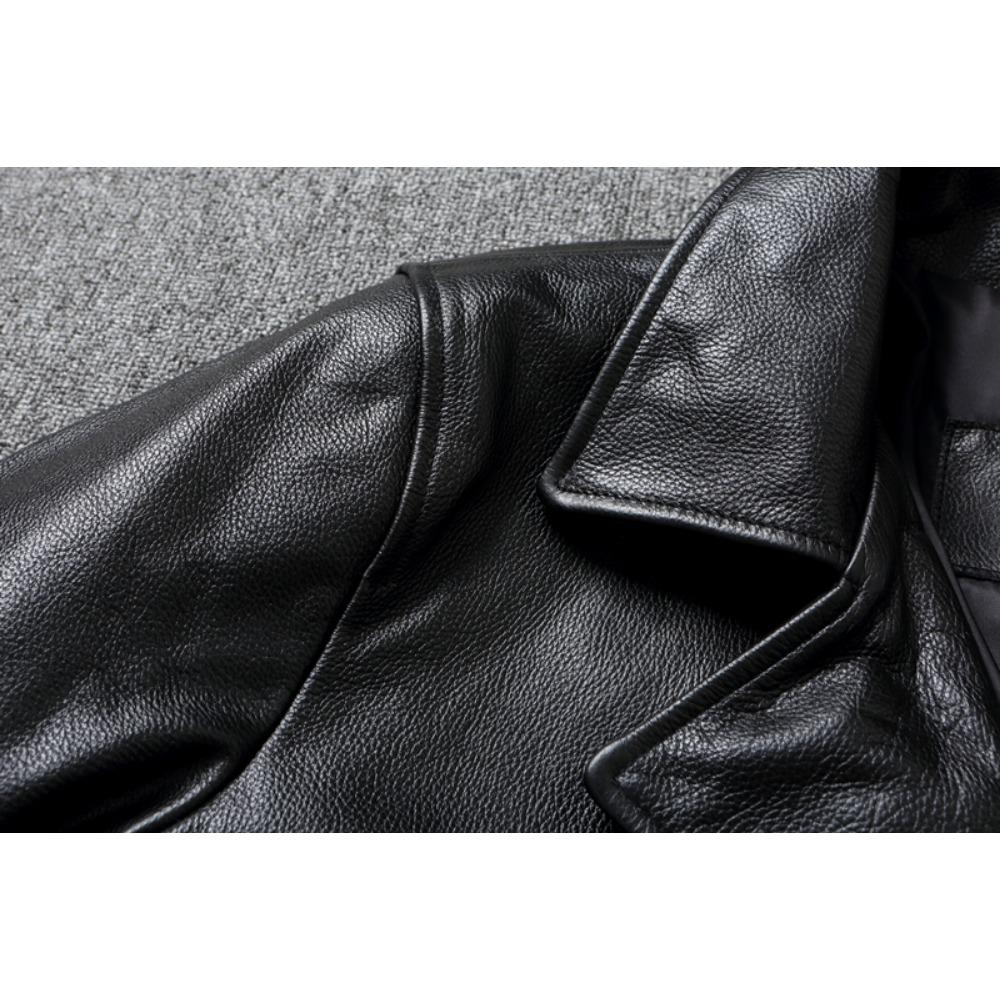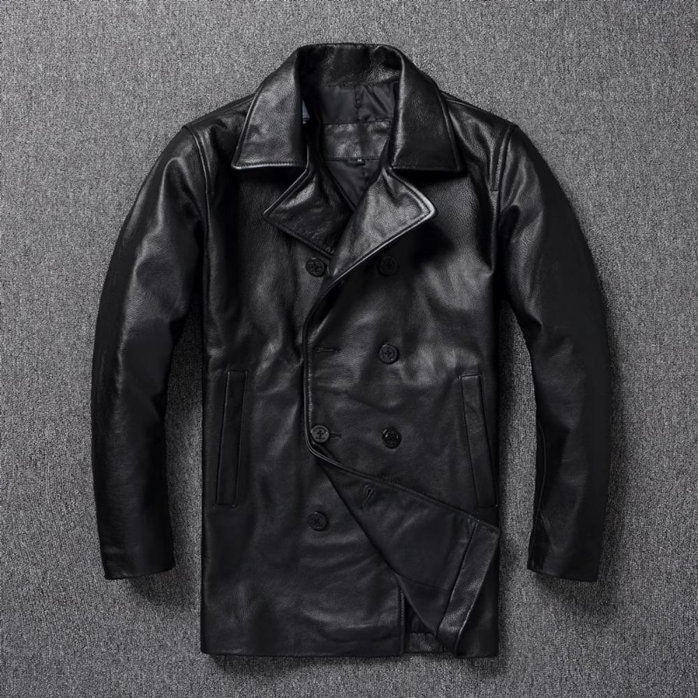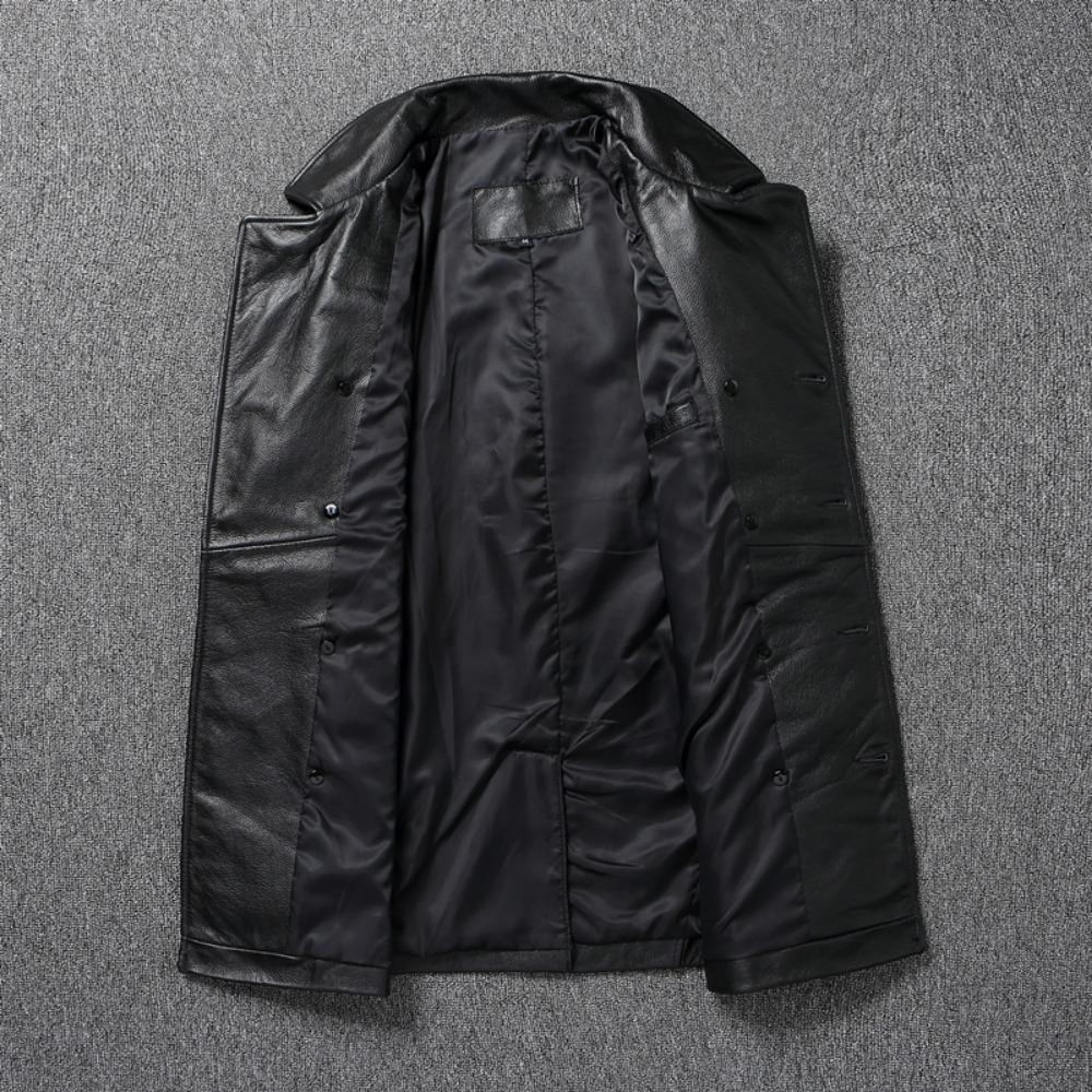 Китайский размер длинное мужское кожаное пальто из натуральной мягкой коровьей кожи классические двубортные отложной воротник кожаные куртки для мужчин одежда осень