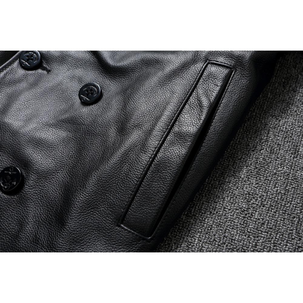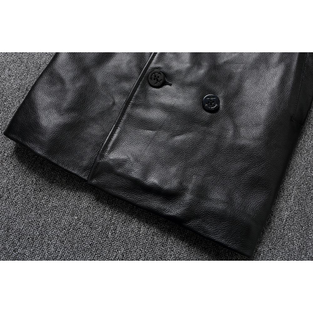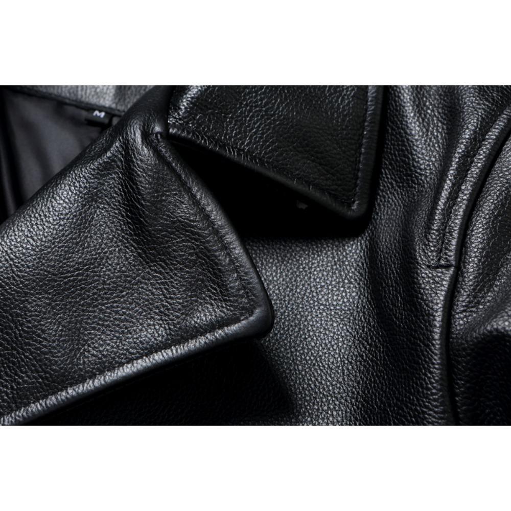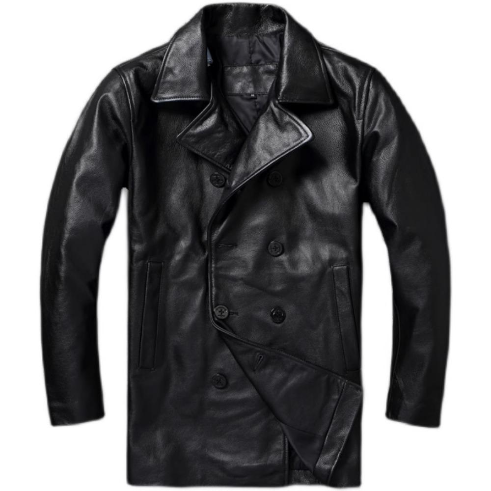 Китайский размер длинное мужское кожаное пальто из натуральной мягкой коровьей кожи классические двубортные отложной воротник кожаные куртки для мужчин одежда осень
