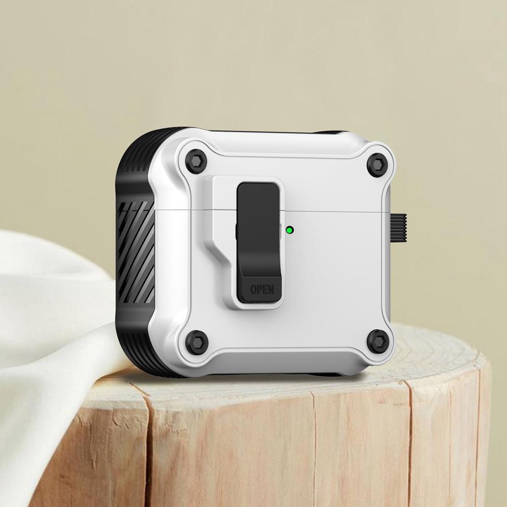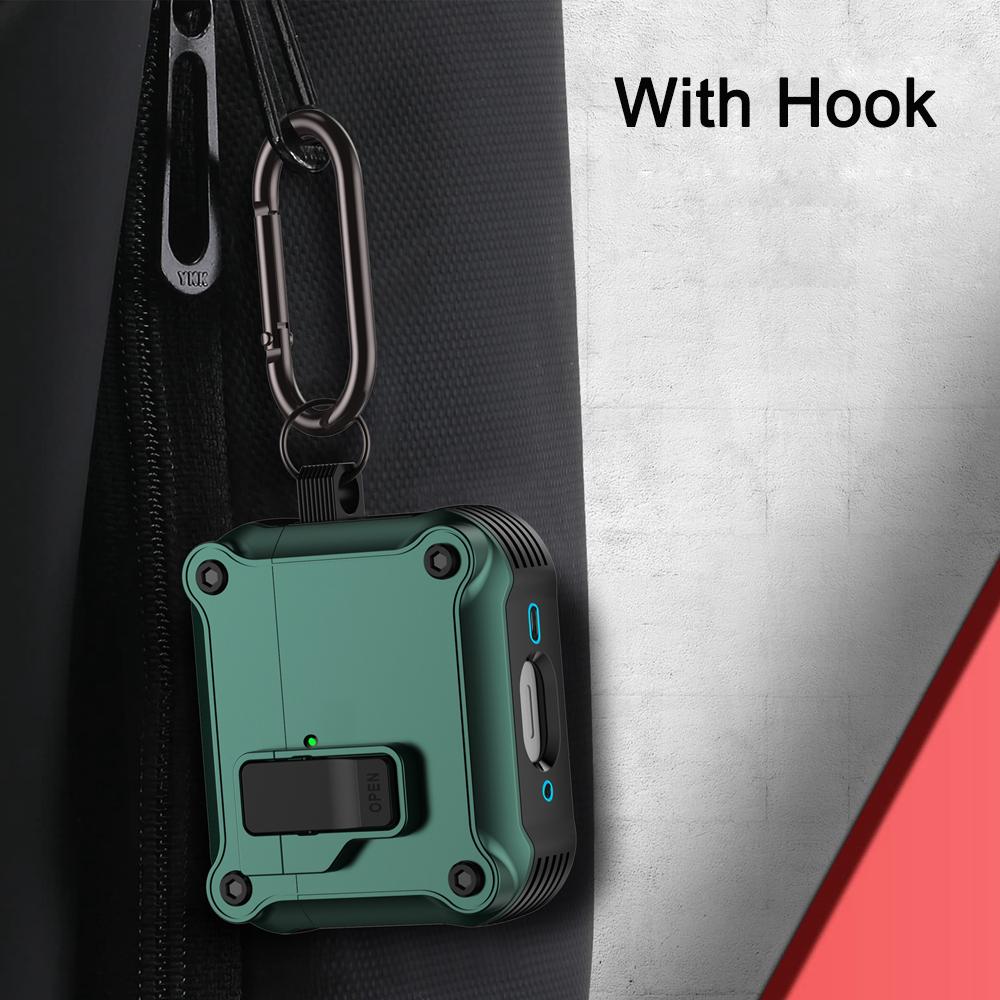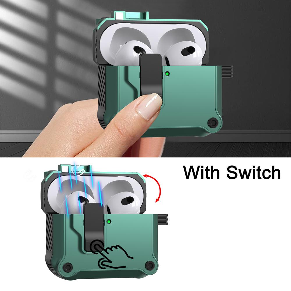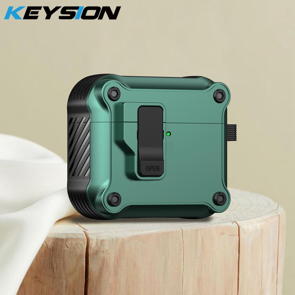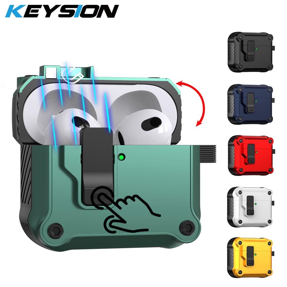 KEYSION Чехол для наушников Bluetooth для AirPods 4 с переключателем и крючком, силиконовый + противоударный защитный чехол из поликарбоната для AirPods 4th