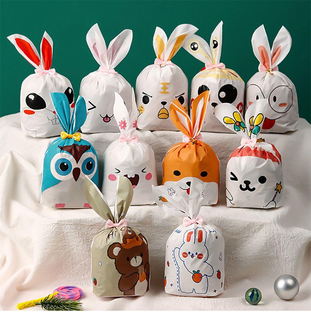 50 шт. Новые пасхальные картонные мешочки с ушками кролика, пластиковые мешочки для конфет в виде животных для детей, упаковка для печенья на день рождения, подарки своими руками