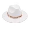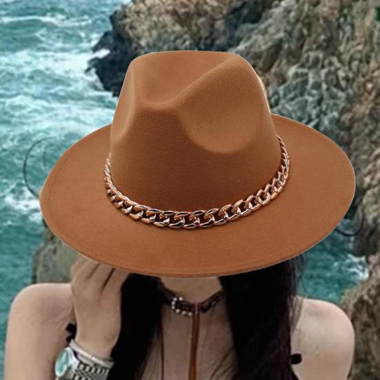 Раскройте своего внутреннего джентльмена с помощью этой простой, но изысканной шляпы в джазовом стиле с широкими полями, куполообразной конструкцией и эффектной цепочкой, придающей образу уникальность.
