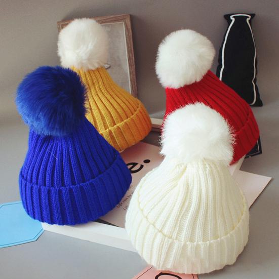 Зимняя детская шапка унисекс вязаная шапка эластичная утолщенная однотонная искусственный меховой шарик декоративная теплая повседневная шапка головной убор для улицы для детей 4-8 лет — купить товар онлайн с бесплатной доставкой до всему миру!