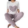 2 шт./комплект, женская зимняя пижама, круглый вырез, узор в виде сердца, короткий рукав, домашняя одежда, топ, штаны, комплект, свободная домашняя одежда, женская ночная рубашка