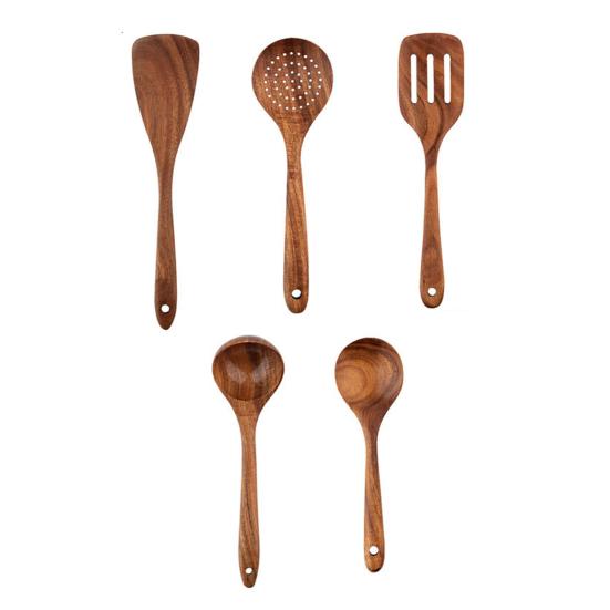 Повысьте свои кулинарные навыки с помощью этого набора из 5 высококачественных кухонных принадлежностей из цельного дерева.. Эргономичные ручки удобны для захвата, легкие и прочные, что упрощает помешивание и подачу.. Гладкая поверхность без заусенцев и ровные края обеспечивают долговечность без трещин и плавления..