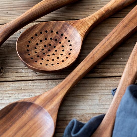 Эргономичные ручки: Эти деревянные приборы удобно держать, они легкие, но прочные. Они облегчают перемешивание и подачу блюд, поднимая ваши кулинарные впечатления на новый уровень.