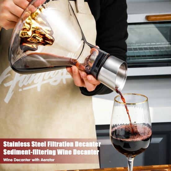Фильтрация из нержавеющей стали: Инновационная крышка со стальным фильтром обеспечивает плавный процесс розлива, эффективно отфильтровывая осадок, обеспечивая мягкий и изысканный вкус в каждом бокале, усиливая общее наслаждение любимыми винами.