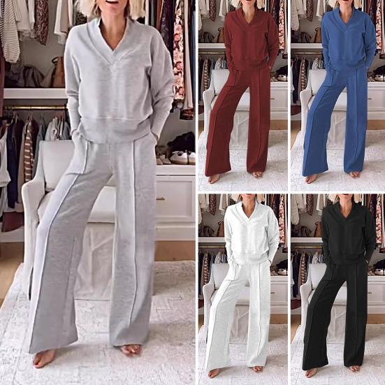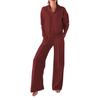 Подчеркните свой стиль с помощью этого женского костюма с индивидуальным дизайном V-образного выреза и модными широкими брюками.. Этот простой однотонный костюм-двойка идеально подойдет для демонстрации вашего очарования. Он универсален для повседневной носки и подходит для людей разного типа фигуры и возраста.. Изготовленный из дышащей полиэфирной ткани, этот костюм обеспечит комфорт весной, осенью и зимой..