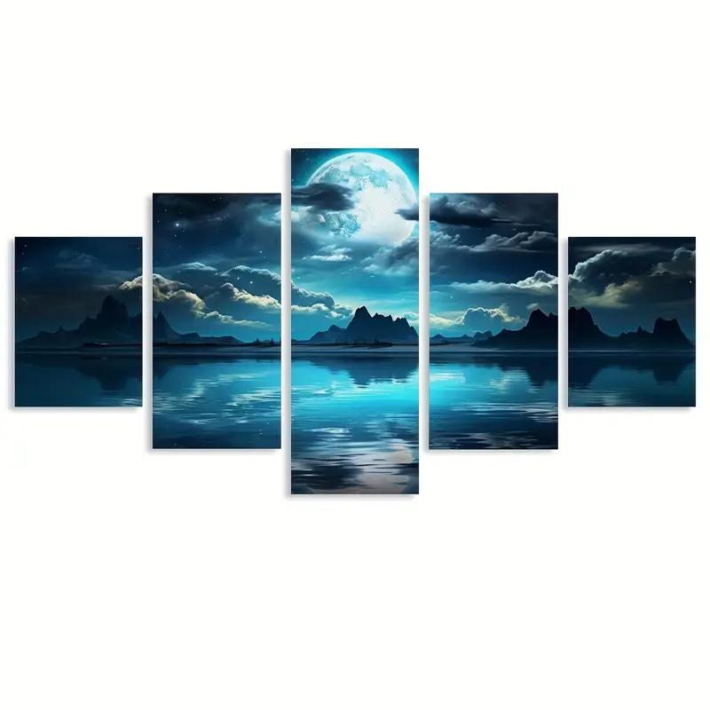 5 шт./компл. Пейзаж Печать на холсте Плакаты, Луна Океан Холст Настенные художественные картины, Художественная настенная живопись для гостиной, спальни, летучая мышь без рамки