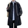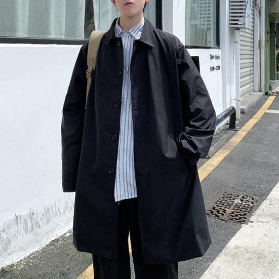 Мужская ветровка, пальто с лацканами, длинный рукав, двубортный тренчкот с карманами, однотонный, свободный крой, повседневная верхняя одежда средней длины