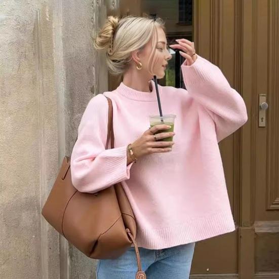 Повседневный шикарный дизайн: Создайте непринужденный, но модный образ с этим женским свитером однотонной расцветки, трикотажной фактурой, круглым вырезом и свободным кроем, который создает простой, но модный образ.