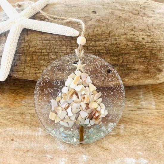 Дизайн в пляжной тематике: Это украшение размером 10*10 см привнесет в ваш дом спокойную и умиротворяющую атмосферу океана во время праздничного сезона.. Напоминая о красоте побережья, он создает успокаивающую и расслабляющую атмосферу.
