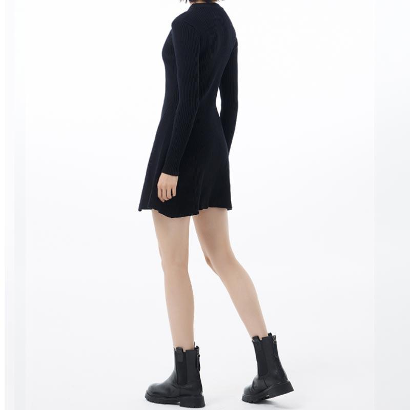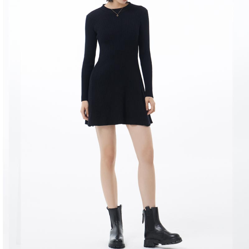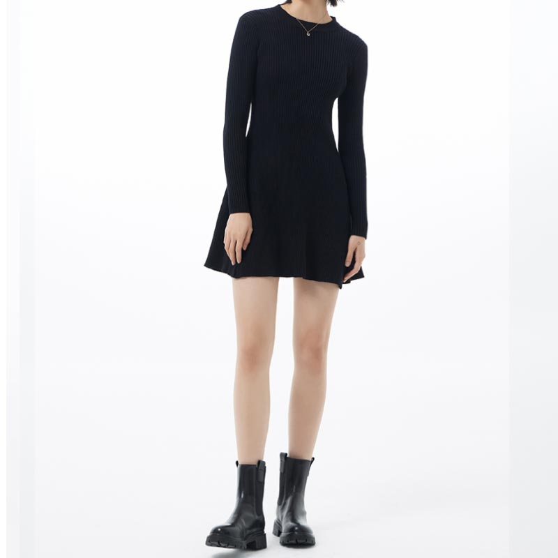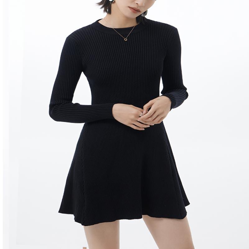 Трикотажное платье с длинным рукавом для женщин, осень-зима, облегающее платье с круглым вырезом, трапециевидной формы, черное, корейский стиль, одежда Y2k