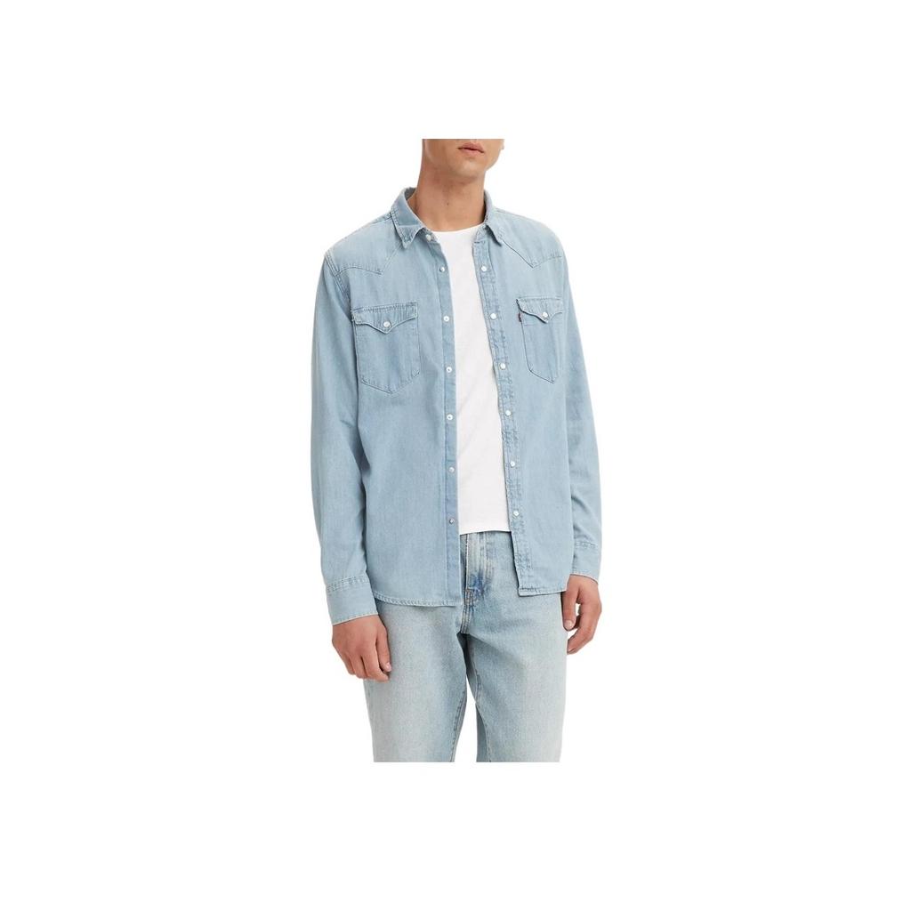 Levis SS22 Рубашка мужская с длинным рукавом, однотонная, с логотипом в стиле пэчворк, с эффектом стирки водой, синяя 85745-0003
