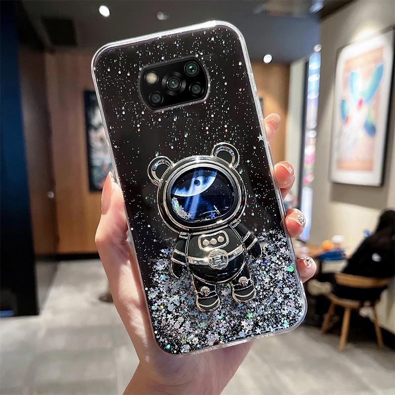 Чехол Pocox3 Quicksand Astronaut Holder для Xiaomi Mi Poco X3 Pro Nfc X4pro M3 F3, силиконовый чехол-подставка Poko X 3 X3pro Pokox3