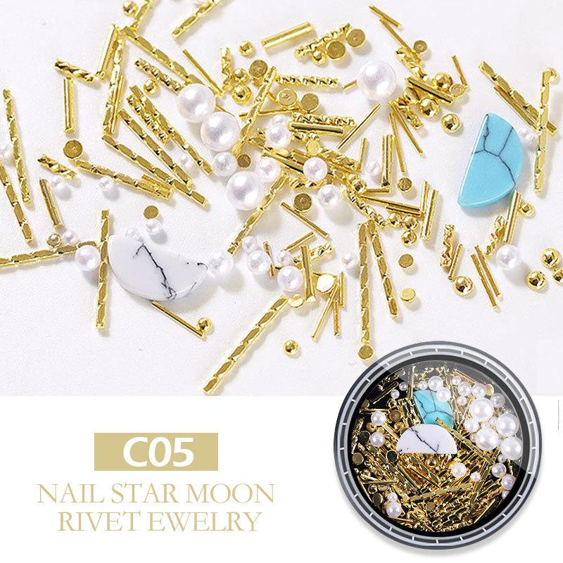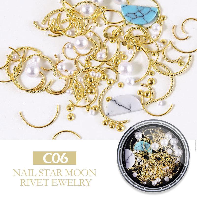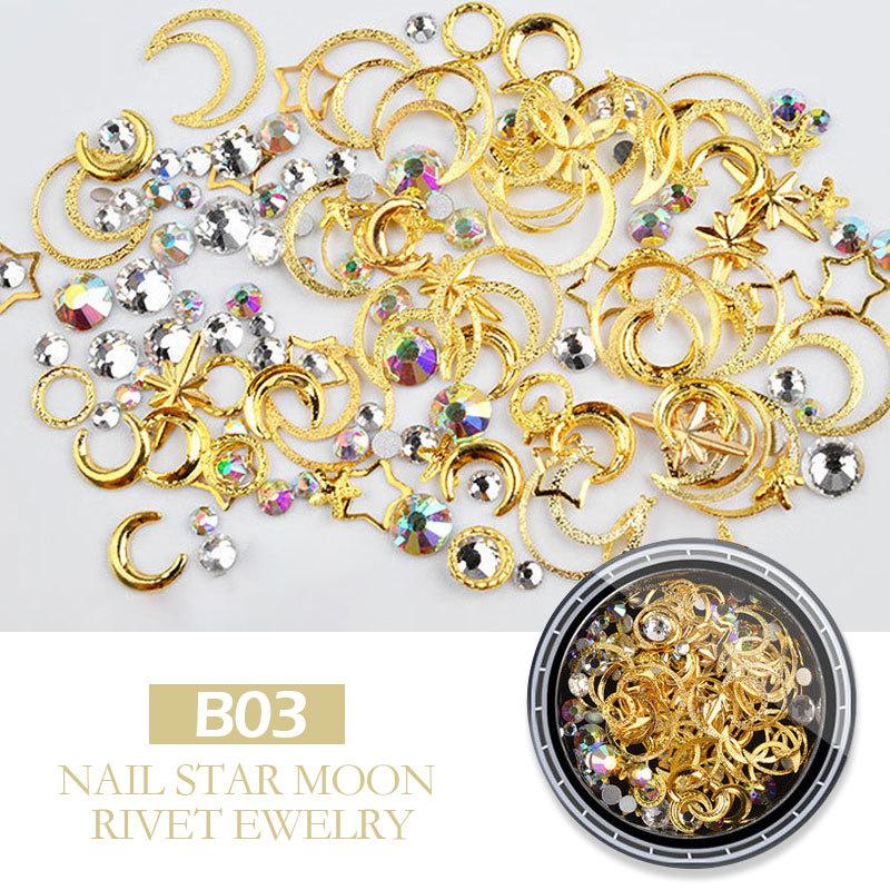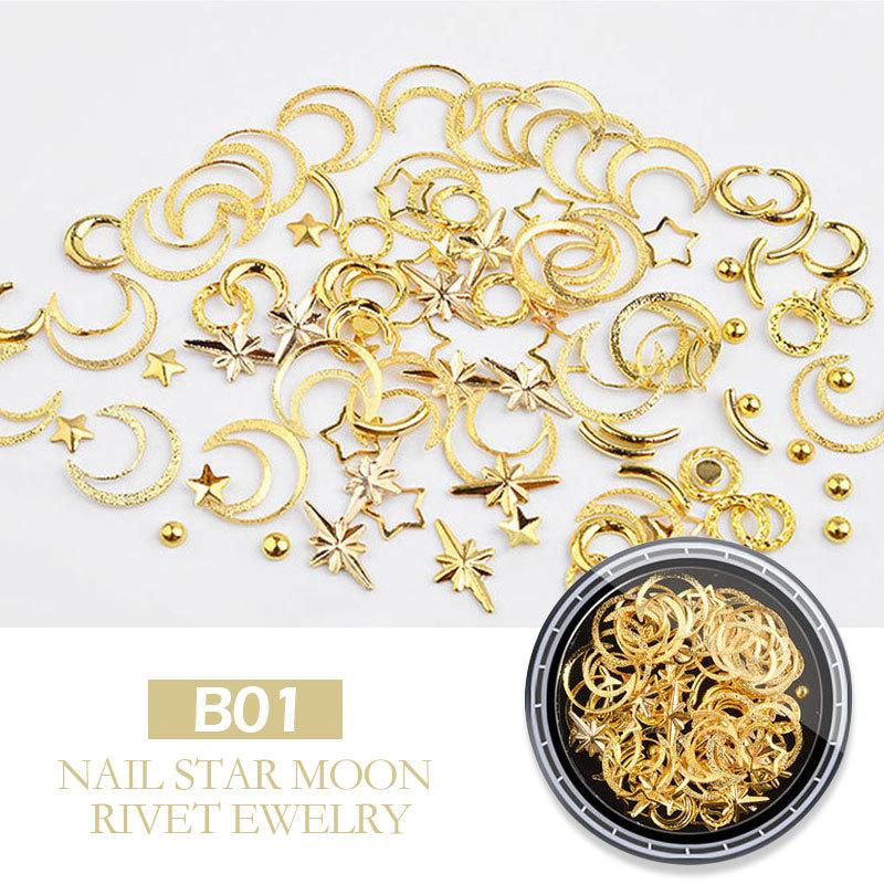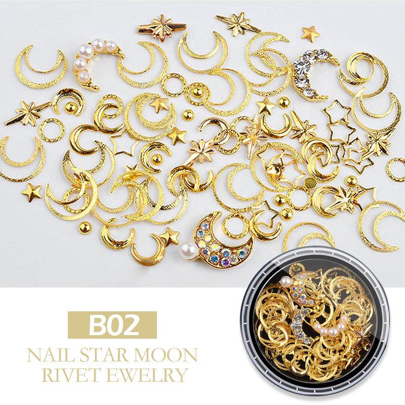 Дизайн ногтей, украшения в виде звезд и луны, набор из заклепок, круглое украшение для сверления ногтей из листовой меди.