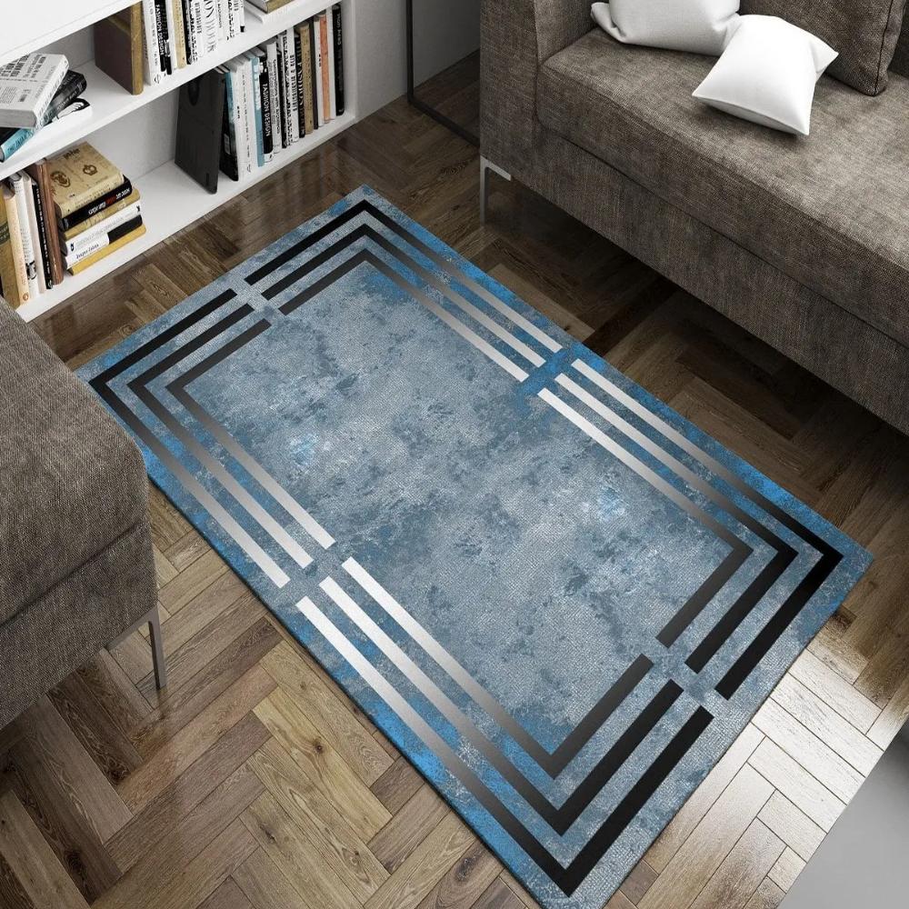 Современный геометрический ковер с синим и черным узором, моющийся нескользящий ковер для гостиной, мягкий коврик, коврик для беговой дорожки