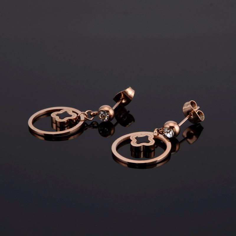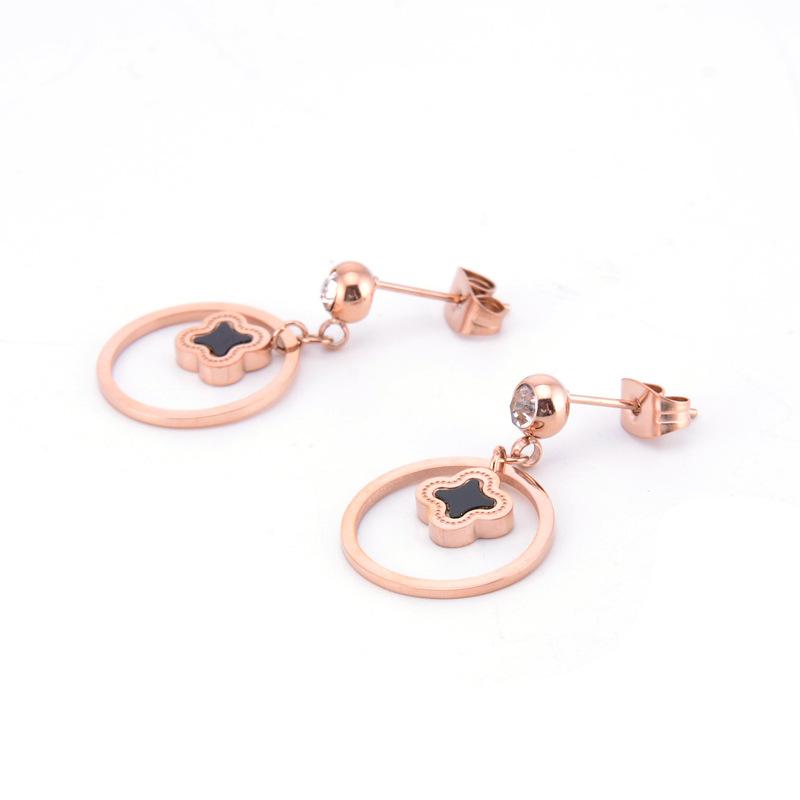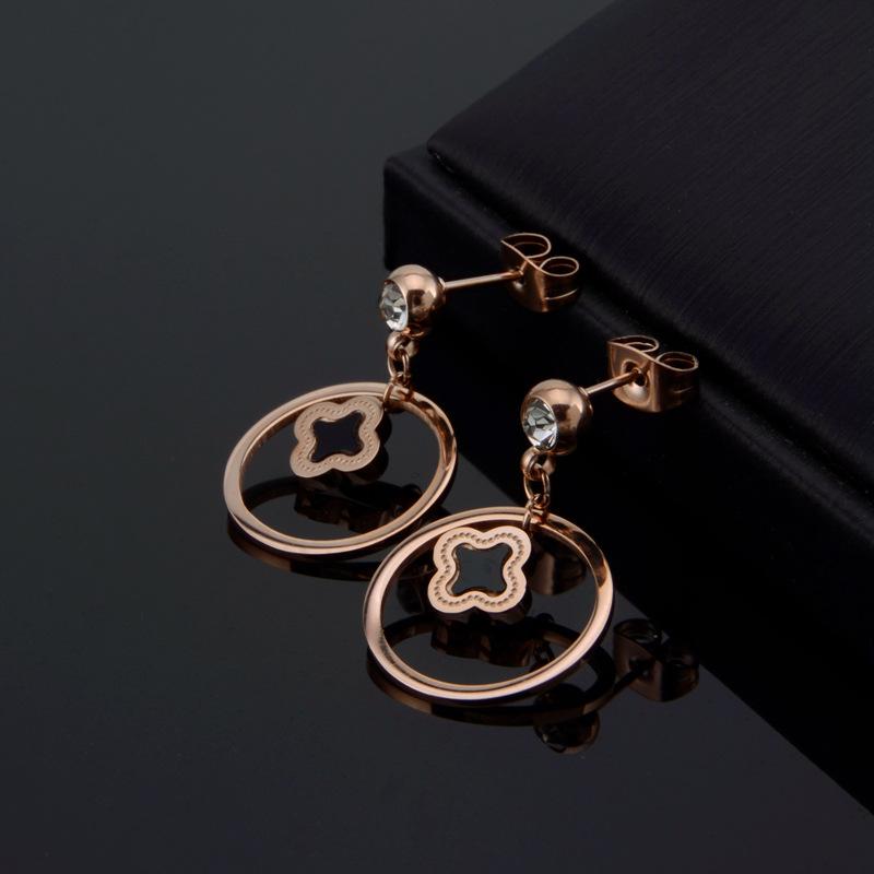 Новые серьги-клеверы с двойным кольцом из розового золота и титановой стали