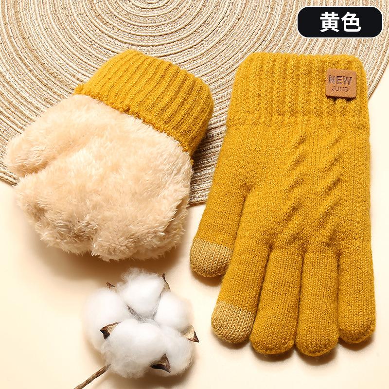 Женские зимние утолщенные двухслойные вязаные перчатки оптом плюс бархатные холодостойкие и теплые однотонные перчатки для сенсорных экранов