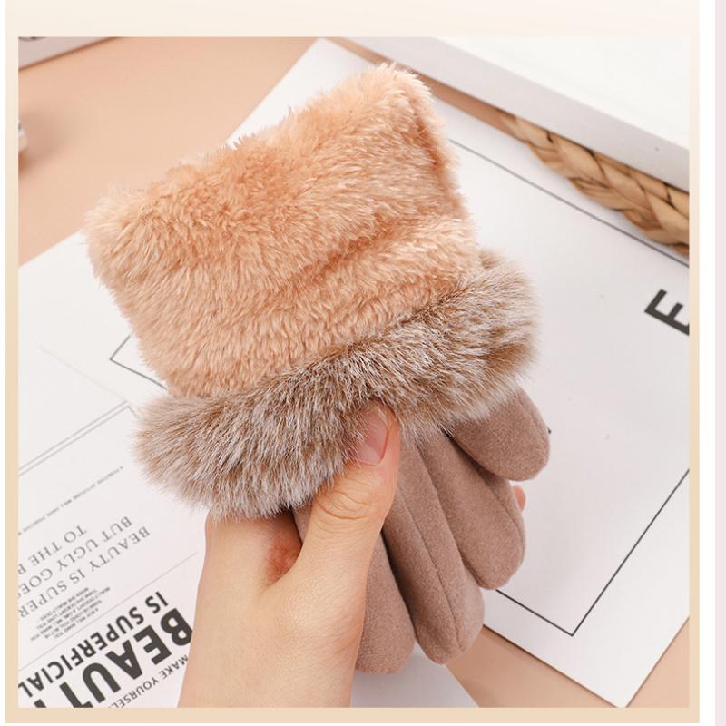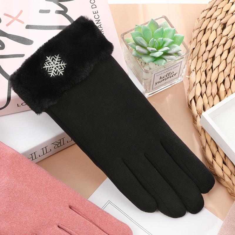 Женские зимние теплые перчатки с сенсорным экраном и кашемиром, утолщенные, для езды на велосипеде, элегантные, с бантом, плюшевые, на запястье, противоскользящие, ветрозащитные
