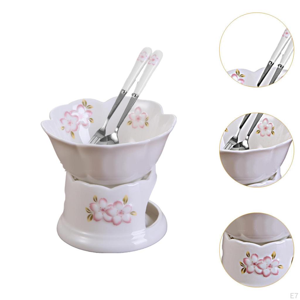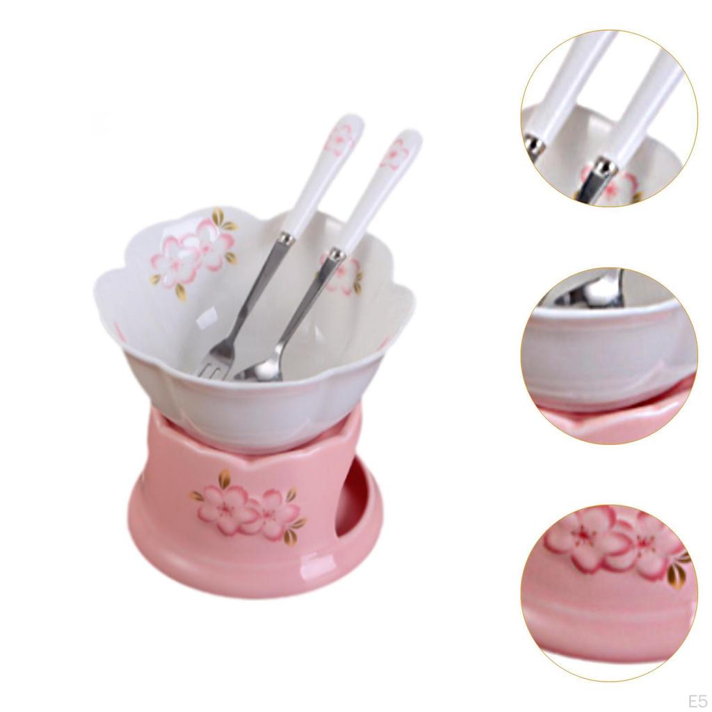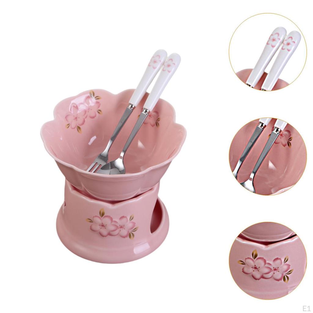 - 【Красивый дизайн】: Набор для фондю имеет очаровательный дизайн в виде цветущей вишни, который добавит нотку элегантности любой сервировке стола.