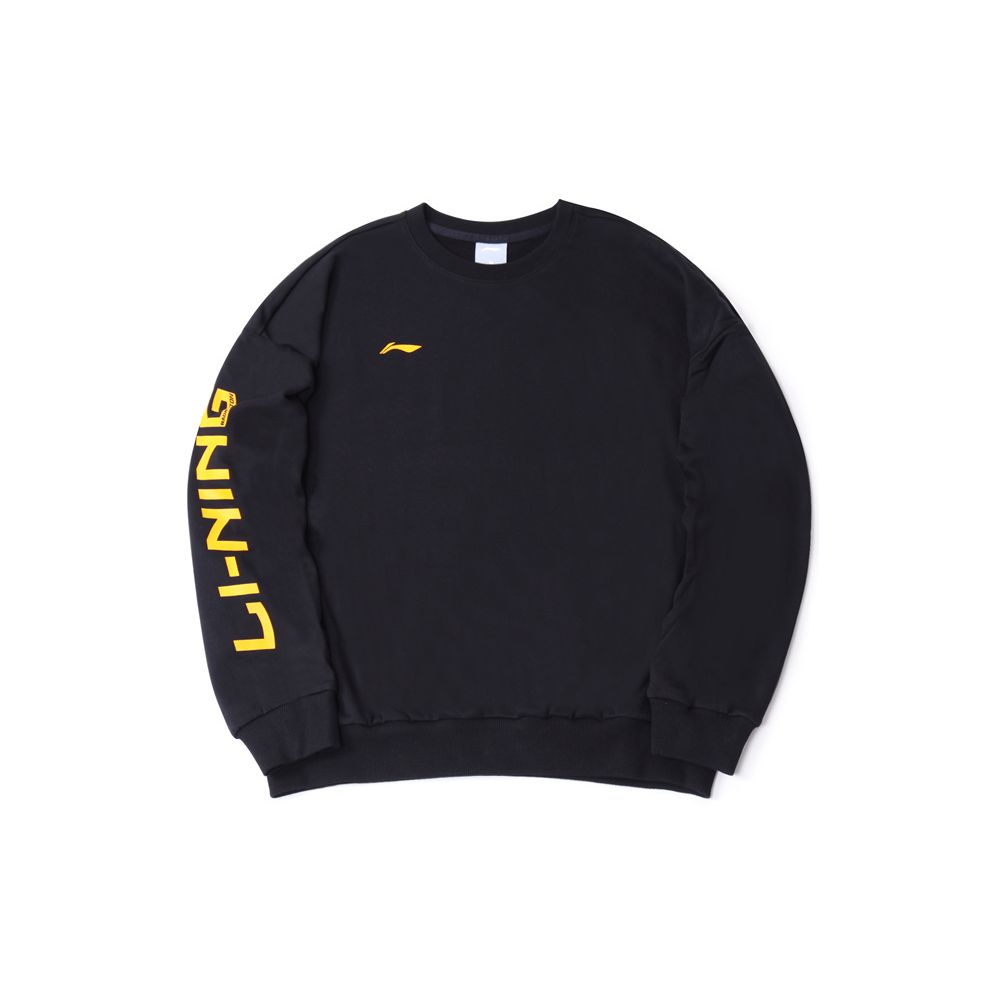 Спортивная толстовка с логотипом Li Ning Color Block с круглым вырезом и принтом, мужские толстовки, черный цвет AWDRF73-1