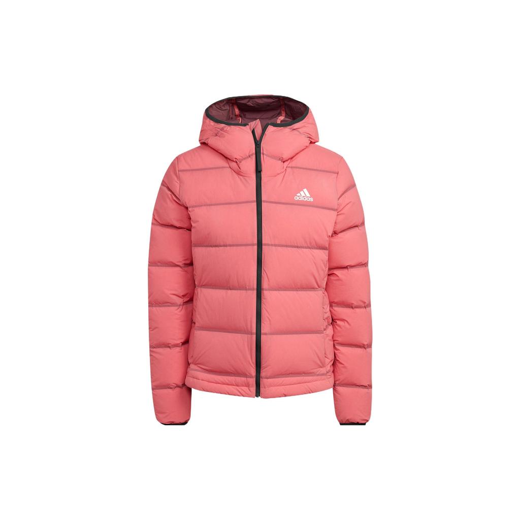 Adidas Однотонный стеганый пуховик с капюшоном и логотипом на молнии, женская верхняя одежда розового цвета HG8715
