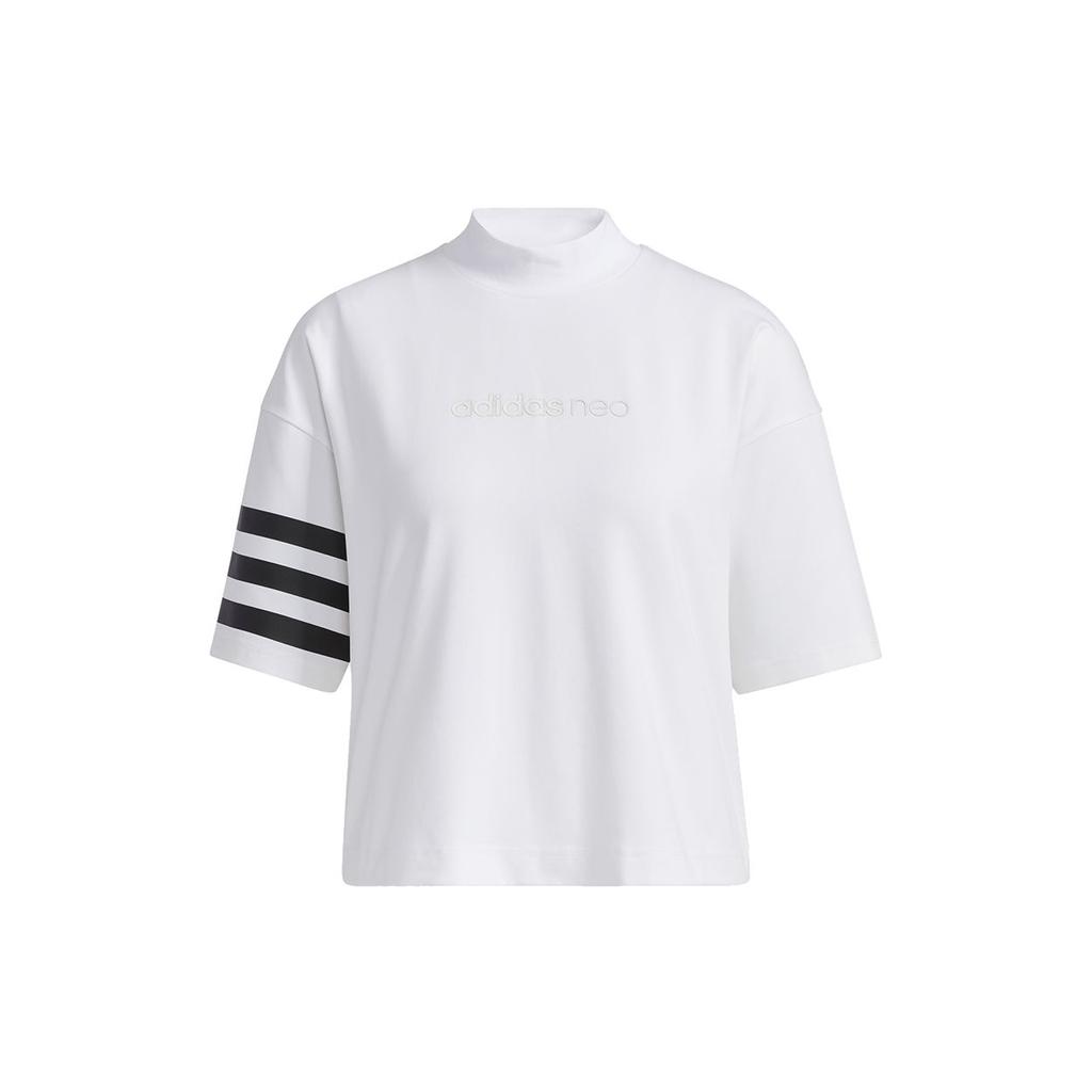 Adidas Футболка Neo W Cs Mar в полоску, спортивная, с коротким рукавом, высоким воротом и заниженной линией плеч, женские топы, белые GP5469