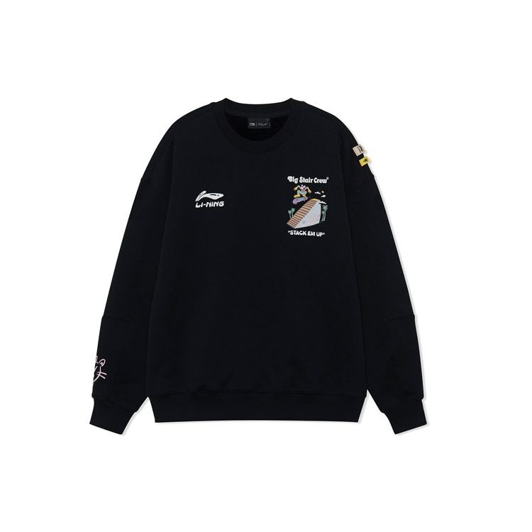 Li Ning X Steven Harrington Collaboration Fun Cartoon Print Теплый флисовый свободный свитер-свитшот Унисекс-свитшот Черный AWDRF81-3