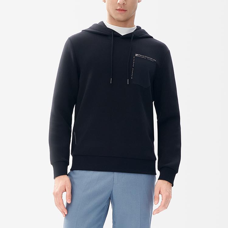 Fila Минималистичное однотонное повседневное трикотажное худи с длинным рукавом для мужчин, черное F11M247203F-BK