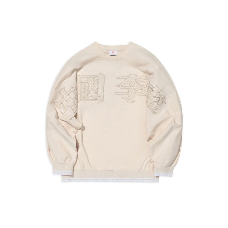 Li Ning свободный круглый вырез свитер свитер осенний стиль для пар мужской свитшот гусь-белый AWDS222-4