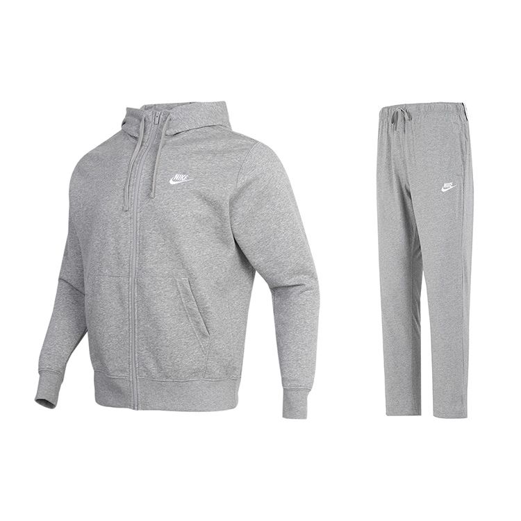 Nike Однотонный кардиган с капюшоном, толстовка, прямые спортивные брюки, повседневный спортивный комплект, мужские комплекты BV2649-063+BV2767-063