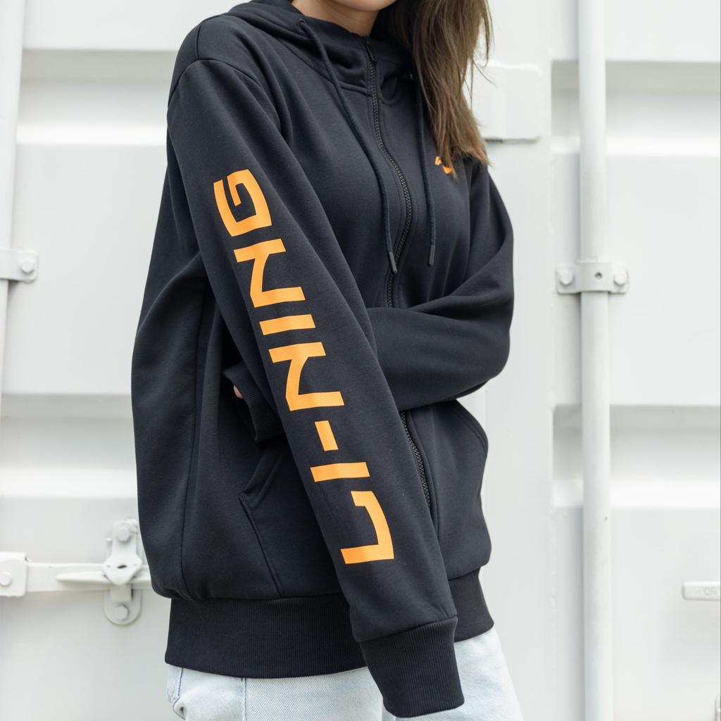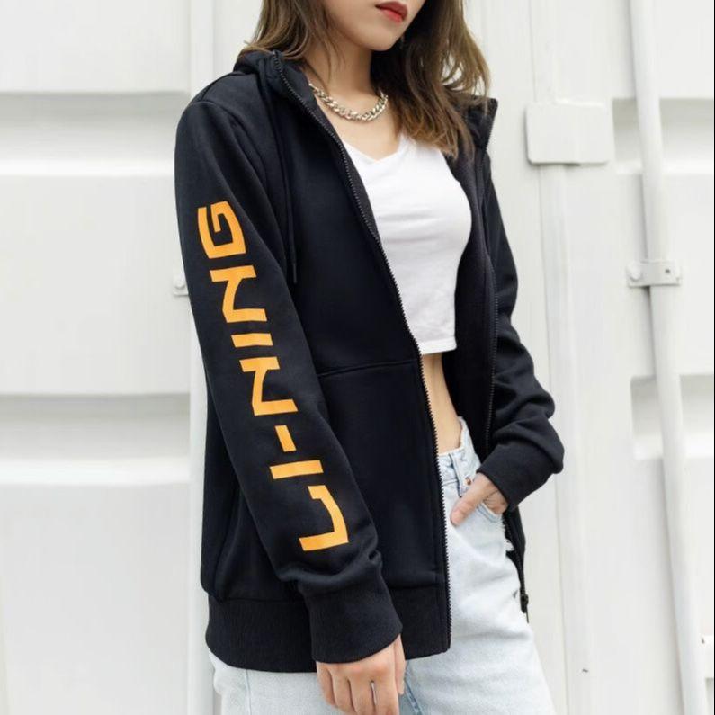 Li Ning Sports Fashion Series Logo Printed Теплая флисовая подкладка с капюшоном на молнии Куртка унисекс Черная AWDPD23-11