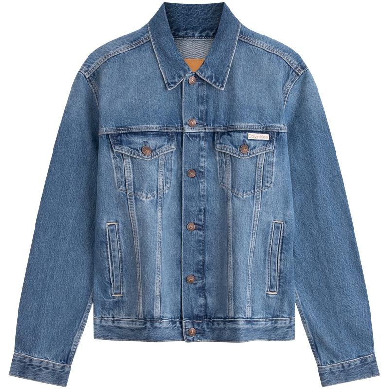 Calvin Klein Классическая джинсовая куртка из хлопка с воротником на пуговицах и заклепками для мужчин Куртки Джинсово-синий 40TM715