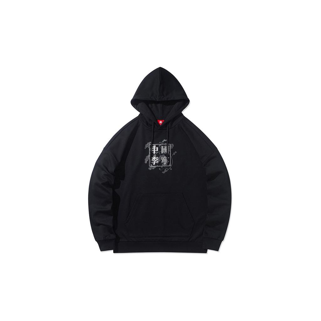 Li Ning Sports Basketball Series Графический принт Толстовка с капюшоном унисекс толстовки черные AWDR947-1