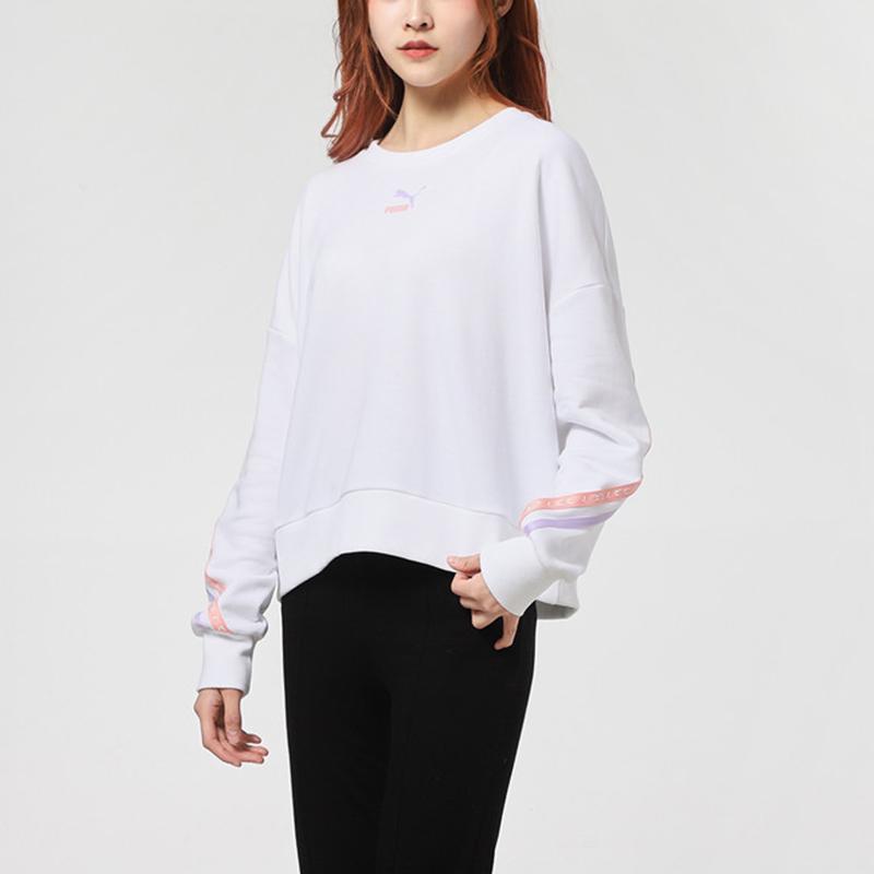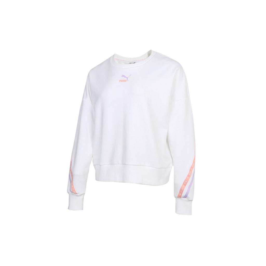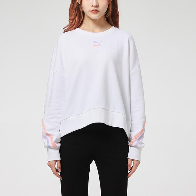 Puma Логотип Повседневный спортивный свитер с круглым вырезом Женская толстовка Белая 531078-02