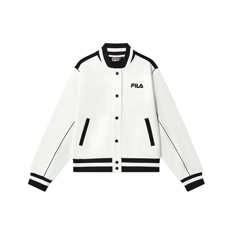 Fila Хлопковая куртка-бомбер в стиле колледжа с принтом логотипа, однобортная, женская, облачно-белая F11W319507F-WT